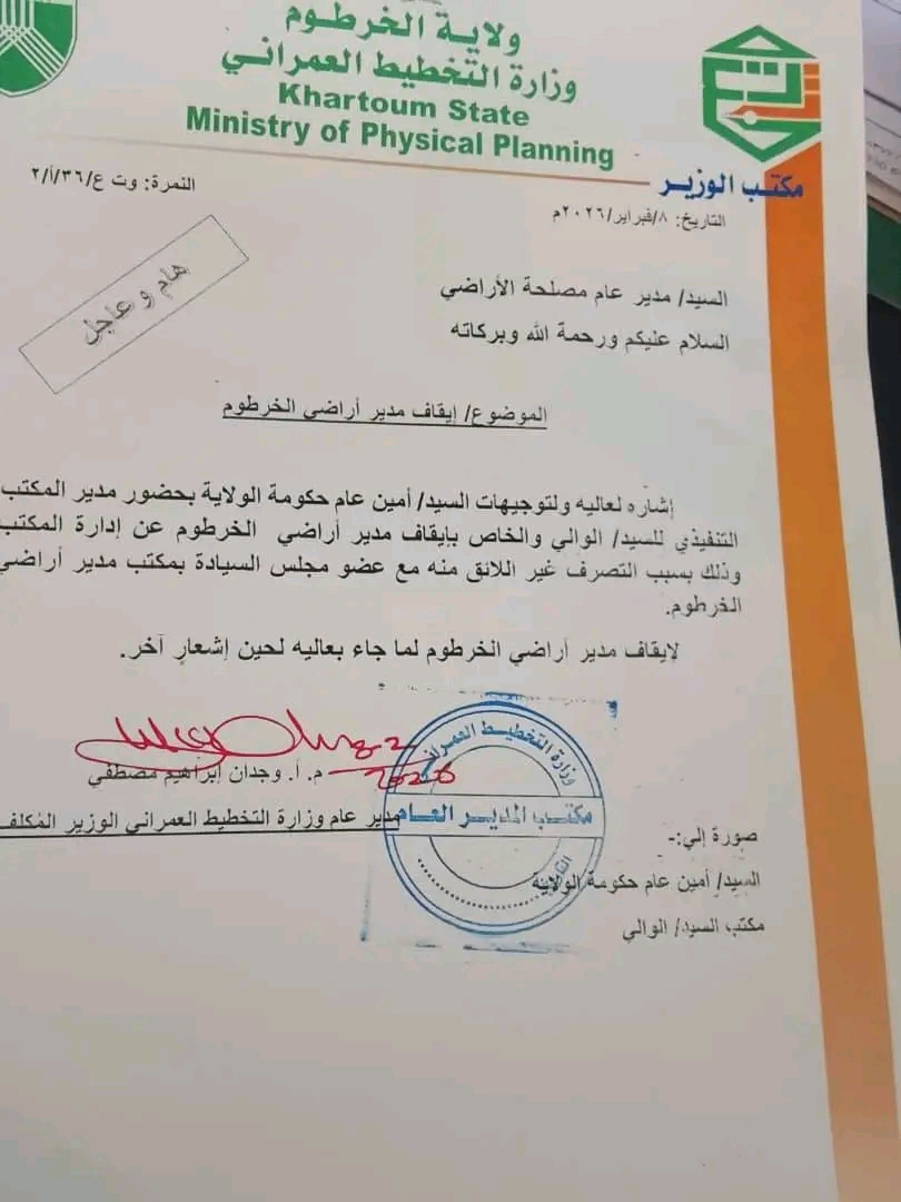 متابعات: نبض نيوز أوقفت سلطات ولاية الخرطوم مدير أراضي محلية الخرطوم، آيات الله محمد أحمد المأذون، عن العمل، في خطوة أثارت جدلًا واسعًا عقب تمسكه بتنفيذ قرار رسمي يحظر التصرف في الأراضي الاستثمارية ورفضه الخضوع لضغوط غير قانونية. وبحسب ما كشفته الكاتبة الصحفية ورئيسة تحرير صحيفة «أون السودان»، رشان أوشي، في مقال استقصائي بعنوان «القانون أم النفوذ؟»، فإن المسؤول الموقوف رفض إتمام إجراءات بيع قطعة أرض استثمارية بمساحة ألف متر مربع، مقتطعة من مجمع إسلامي مملوك لوالد عضو مجلس السيادة د. سلمى عبد الجبار، استنادًا إلى قرار مكتوب صادر عن والي الخرطوم يقضي بوقف التصرف في هذا النوع من الأراضي خلال الفترة الحالية. وأوضحت أوشي أن عضو مجلس السيادة زارت مكتب مدير الأراضي وطالبته بالاتصال بالوالي لتجاوز القرار، غير أنه رفض ذلك، مؤكدًا التزامه بالقنوات الإدارية الرسمية وحدود صلاحياته. ووفقًا للمقال، تطور الخلاف إلى توجيه اتهامات له بالتواطؤ، قبل أن يتدخل الأمين العام لحكومة الولاية ويقوم بإخراجه من مكتبه، ثم صدر قرار بإيقافه عن العمل في اليوم التالي. وأشار التقرير إلى أن إيقاف المأذون جاء رغم خدمته الطويلة في مؤسسات الدولة، التي امتدت لنحو 40 عامًا، ولم يتبقَّ له سوى ستة أشهر على التقاعد. وتعيد الواقعة، بحسب أوشي، طرح تساؤلات حول جدية الدولة في محاربة الفساد، وسط مخاوف من تغوّل النفوذ الشخصي على المؤسسات الرسمية، وما يترتب على ذلك من تقويض لمبدأ سيادة القانون وهيبة الدولة. شارك تصفّح المقالات بريطانيا تطلب مشاورات عاجلة بمجلس الأمن بعد تقارير أممية عن تفاقم المجاعة في شمال دارفور